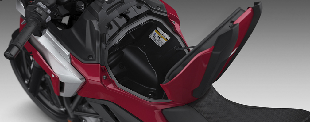 | CONFORT | Al diseño ergonómico, característico de la NC750X, se suma una disminución en la altura del asiento, garantizando un centro de gravedad más bajo que repercute en una posición de manejo más cómoda. El portaobjetos delante del asiento ofrece el espacio suficiente para un casco de doble propósito. La horquilla delantera sumada al monoshock Pro-Link trasero, ambos de 120mm de recorrido, están preparados para entregar sensaciones de manejo agradables sin importar el terreno. |