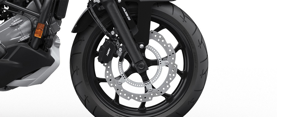 | SEGURIDAD | La nueva NC750X cuenta con ABS de doble canal, evitando bloqueos en ambas ruedas al momento de un frenado exigente. El sistema HSTC (Honda Selectable Torque Control) controla la tracción del neumático trasero en todo momento, garantizando una conducción sin derrapes. El disco delantero de 320mm con pinza Nissin de 2 pistones, sumado al disco trasero de 240mm, garantiza un frenado de alto rendimiento. |