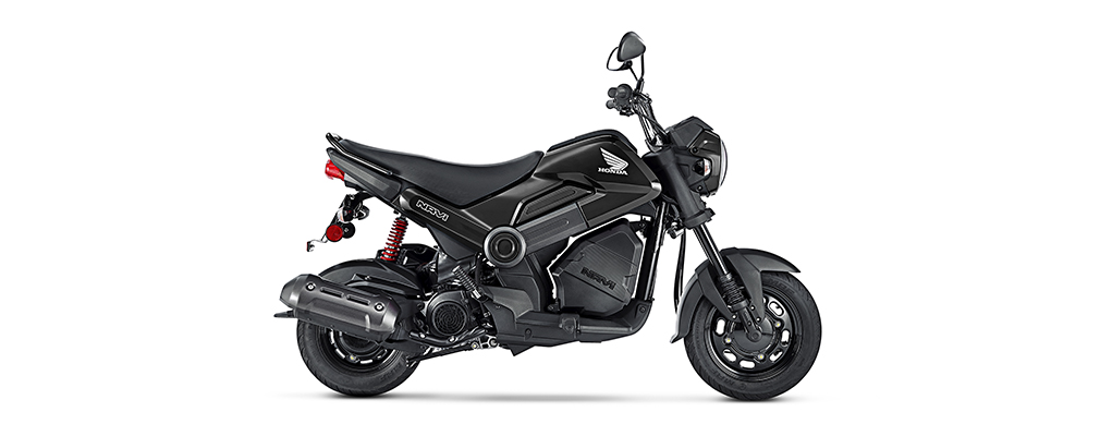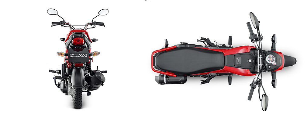 1.808 milímetros de largo, 748 milímetros de ancho, 1.039 milímetros de alto y 104 kilos de peso en orden de marcha. Números que hacen de la nueva Honda NAVi una moto fácil de manejar, de maniobrar y de estacionar. |