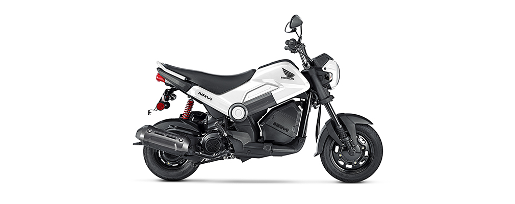 1.808 milímetros de largo, 748 milímetros de ancho, 1.039 milímetros de alto y 104 kilos de peso en orden de marcha. Números que hacen de la nueva Honda NAVi una moto fácil de manejar, de maniobrar y de estacionar. |